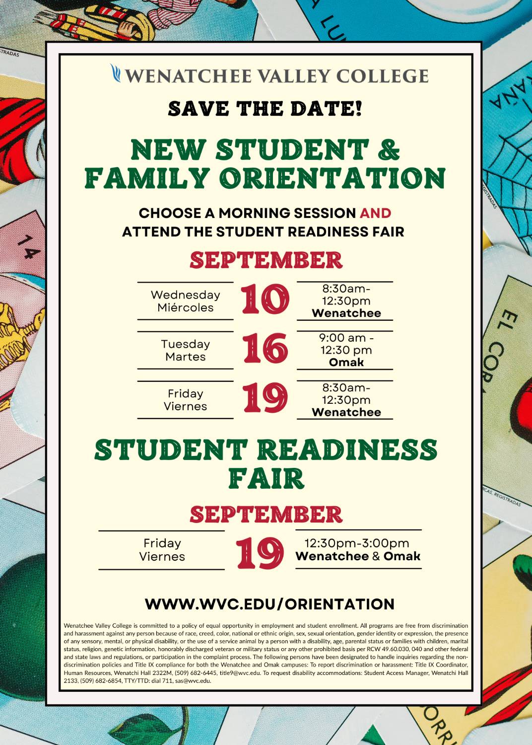 | Miércoles, 10 de septiembre | Hora: 8:30am-12:30pm | Lugar: Campus de Wenatchee |
